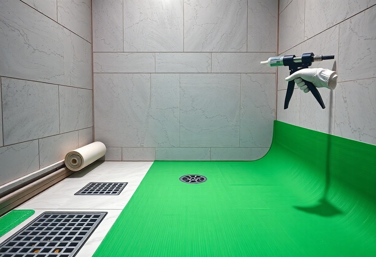 When installing, use the right tools: a notch trowel and polymer-modified thin-set for bonded sheet systems, and a roller or brush for liquid membranes. For small shower trays (e.g. 1.2 m × 0.9 m) buy an extra 10-15% of membrane to allow for overlaps and waste; test the finished assembly with a flood test and document drying times to preserve manufacturer warranties and avoid expensive water damage.