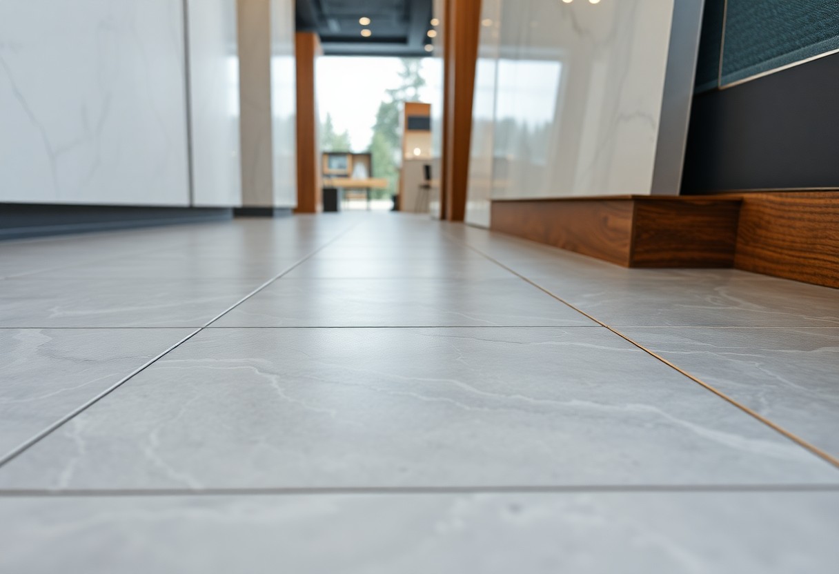 You can choose porcelain for commercial-grade durability – many tiles carry a PEI 5 wear rating and porcelain meets ISO standards with water absorption ≤0.5%, making it ideal for wet rooms. Sizes typically range from 200×200mm to 600×600mm and large-format 1200mm+ slabs, so you can minimise grout lines; manufacturers like RAK and Marazzi produce rectified edges for tighter joints, and porcelain performs well over underfloor heating systems.