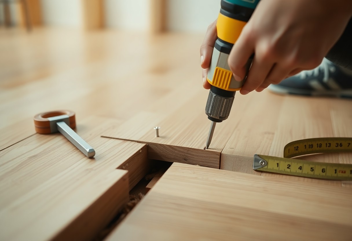 You should keep a compact kit: 1¼ in (30 mm) trim‑head screws for hidden fastening, a cordless impact driver with torque control, PL‑type polyurethane adhesive for loose tongue joints, 8-10 mm wooden shims, 120‑grit sandpaper and felt pads for furniture. For quieter subfloors consider a floor‑repair kit or glue‑and‑screw systems; using the correct screw length avoids splitting and prevents hitting services beneath.