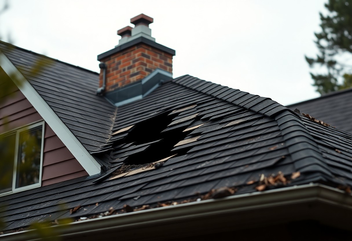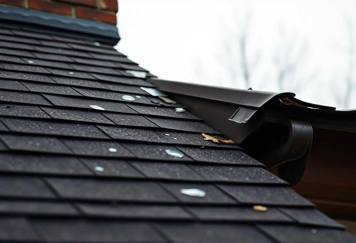 If hailstones measured over 20 mm (0.8 in) you should suspect impact damage: dented metal flashings, fractured tiles and stripped granules on asphalt roofs. Tests show hail larger than 25 mm can perforate older felt membranes, and manufacturers rate shingles by UL 2218 impact classes-Class 4 withstands severe hail. Photograph dents and count damaged tiles; missing granules and visible cracks indicate your roof needs prompt assessment.