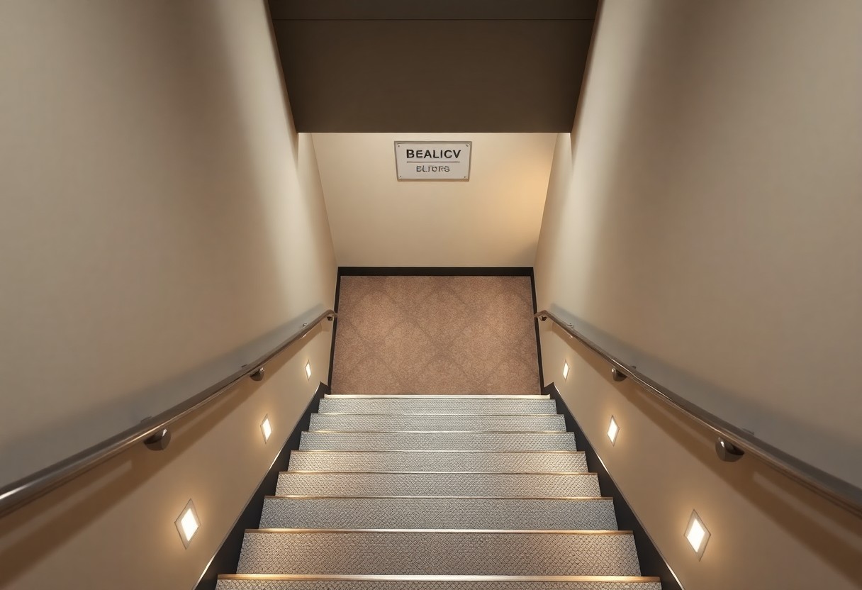 A: Treads should be slip resistant in the expected conditions of use and have consistent nosing profiles; nosings should be clearly distinguishable from the tread by contrast in tone or texture to aid users with reduced vision. Lighting must provide even, glare-free illumination across flights and landings; emergency lighting is required where escape routes need to be safe in a power failure. Materials and finishes must perform reliably over time and in the building’s intended environment.